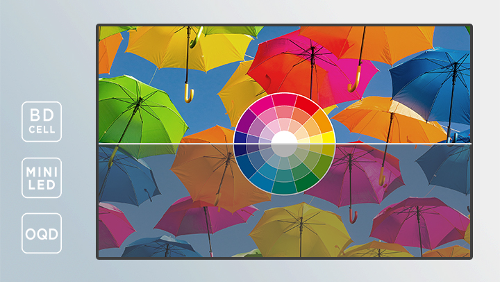 With BD cell, Mini LED, OQD, and other technologies, ultra-high contrast ratios and color restoration comparable to OLED can be achieved.